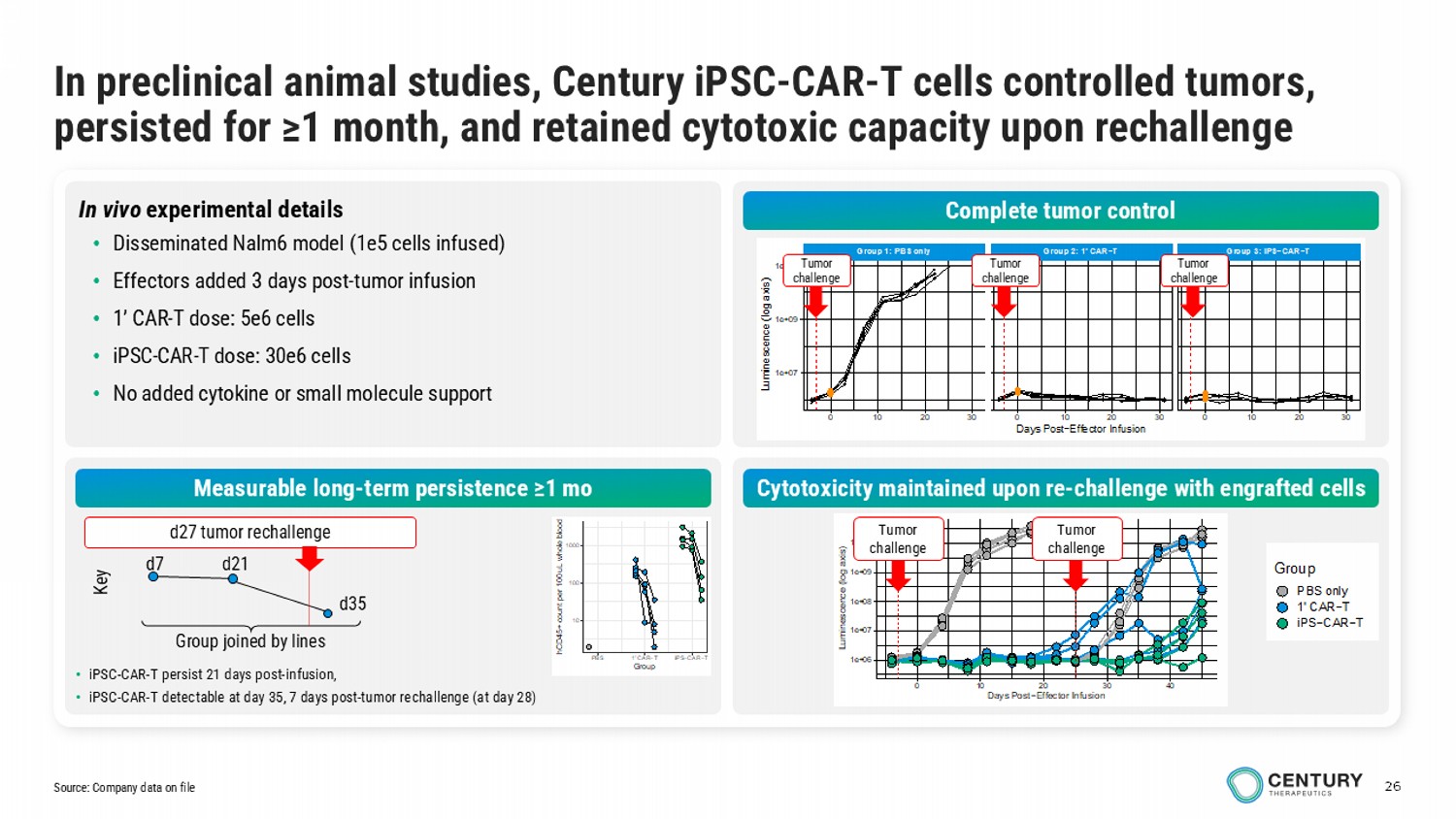 Century has generated in vitro and in vivo preclinical data demonstrating: